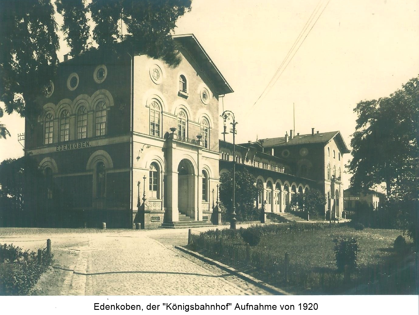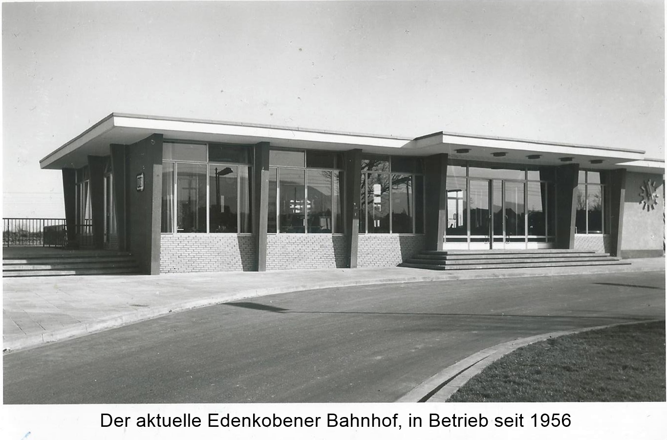 Der Bahnhof Edenkoben war bis zu seiner Zerstörung am 5. Januar 1945 ein prächtiger Königsbahnhof. Heute steht dort ein funktionales Gebäude aus den 1950er Jahren.